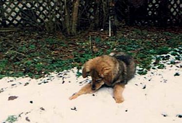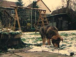Die Geschwister von Fuchur, ein Jahr alt: von links: Willi; Fuchur; liegend vorne, die Mutter, Lina; hinten liegend, Balu; Chika und Ben. Eine Schwester fehlt - sie war damals läufig und kam deshalb nich zum Treffen.